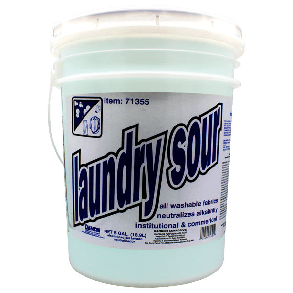 “Liquid laundry neutralizer. This laundry additive is designed for use in the rinse cycle of commercial laundry machines. Helps remove hard water minerals, metallic contaminants and removes acid sensitive stains for efficient cleaning. Provides skin-compatible pH and requires no further rinsing. Use rate approximately 1 ounce per 50 lbs. of wash.”