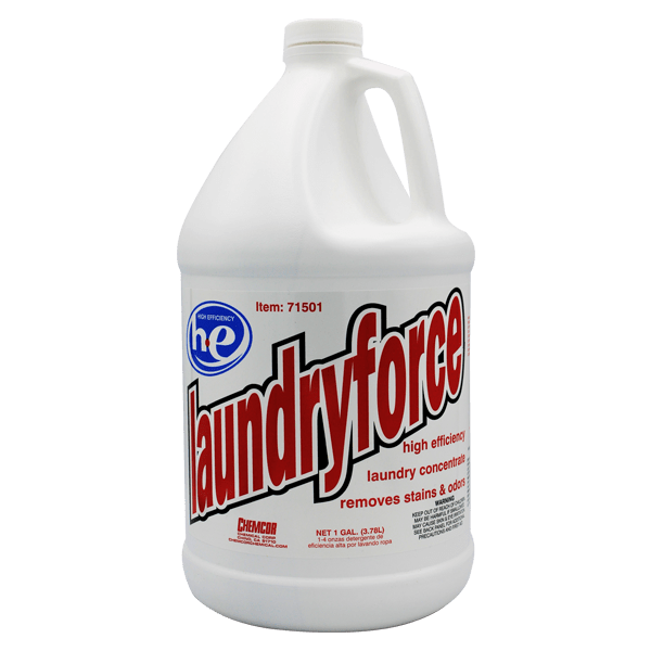 “High Efficiency laundry concentrate detergent. Concentrated for institutional and commercial laundry requirements. Excellent performance on light to medium soil loads. Formulated with a balanced blend of surfactants, soil suspending agents, and brighteners to aggressively release trapped soils and stains while gently producing clean and refreshing results. Safe for use in all types of high efficiency and regular machines and on all washable fabrics. Normal usage rate is ¼ to ½ cup per standard load. “